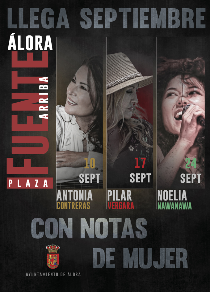 La concejalía de Cultura del Ayuntamiento de Álora organiza, este mes de septiembre, los conciertos “Con notas de mujer”. Tendrán lugar en la Fuente Arriba a las 21:30h.