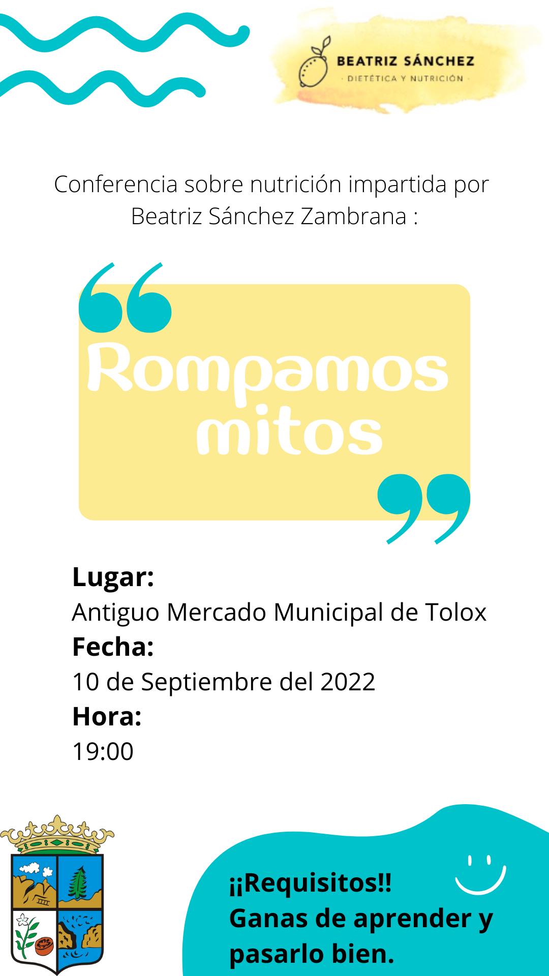 “Rompamos Mitos” Conferencia sobre nutrición, impartida por nuestra vecina Beatriz Sánchez Zambrana.NO TE LA PUEDES PERDER!!!!