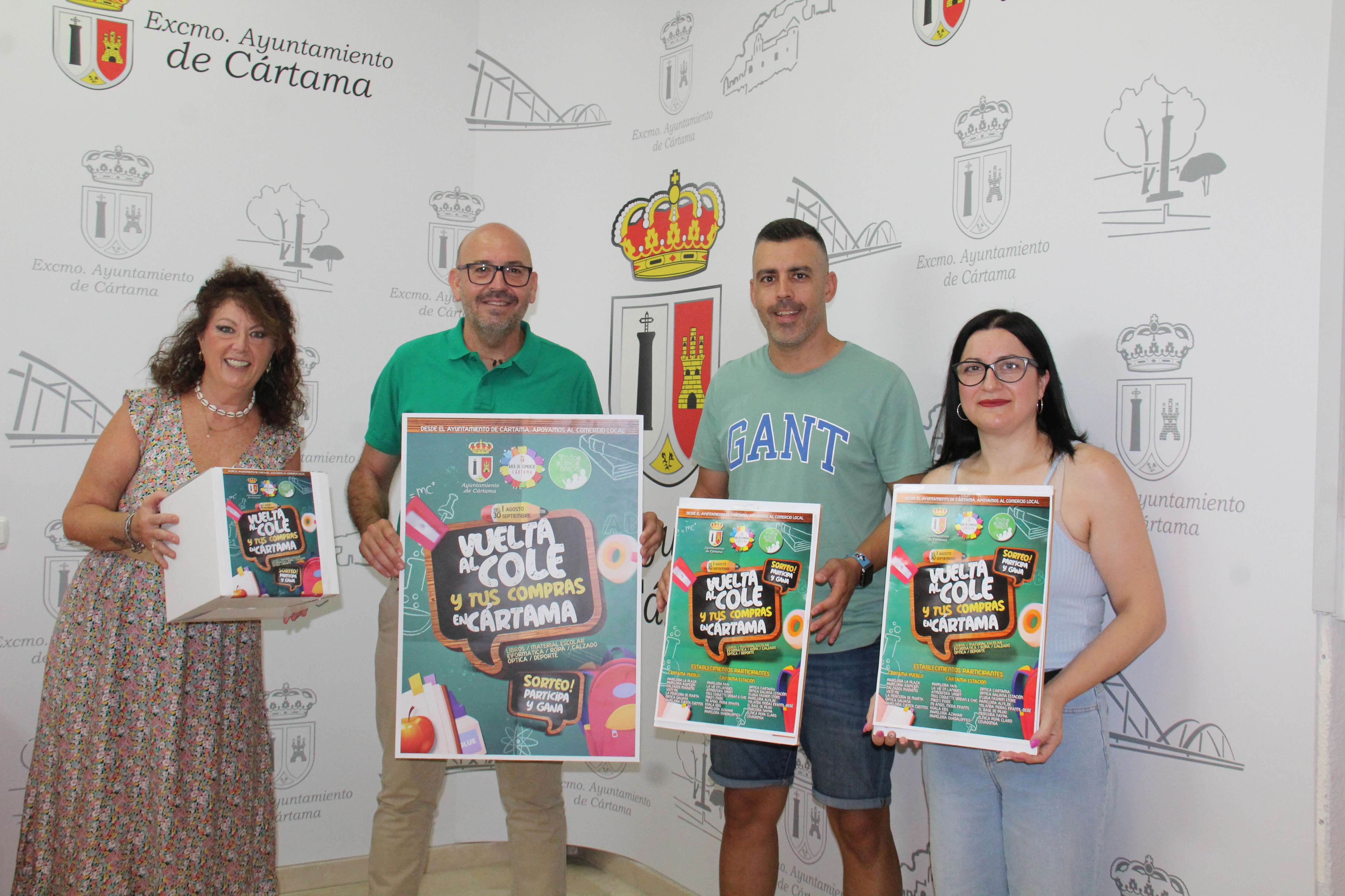 El Ayuntamiento de Cártama, a través del área de Comercio, ha organizado una nueva edición de la campaña de apoyo al comercio local “Vuelta al cole y tus compras en Cártama”. Esta mañana ha tenido lugar el acto de presentación de esta iniciativa, que celebrará su séptima edición, en la que han estado presentes el alcalde de Cártama, Jorge Gallardo, la concejala de Comercio, Toñi Sánchez, y empresarios participantes en esta campaña.
