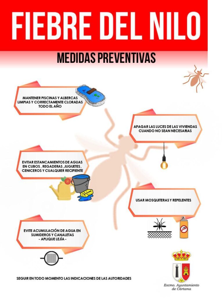El Ayuntamiento de Cártama ha puesto en marcha de nuevo una campaña informativa para prevenir la Fiebre del Nilo Occidental, que se transmite por la picadura de mosquitos. En este sentido,