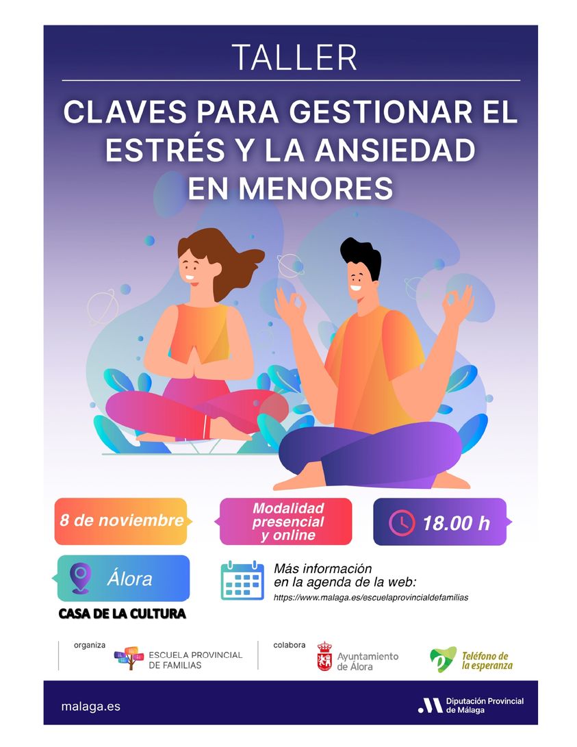 Será impartida por Rocío Gómez Carrillo, es gratuito y se celebrará el día 10 de noviembre de 2022 a las 18.00 horas. Está organizado por la Escuela Provincial de Familias, con la colaboración del Ayuntamiento de Cártama.