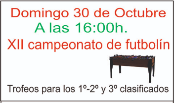 Jueves, 27 de octubre 17:30h Bermejo Viernes, 28 de octubre 17:30h Bda El Puente