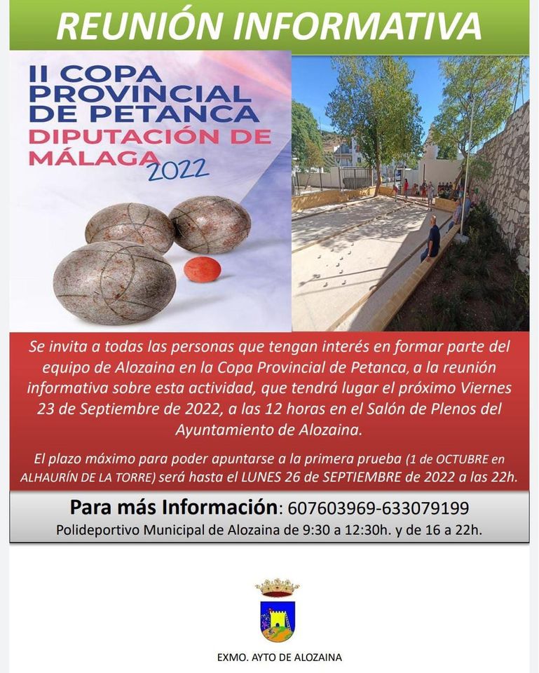 Alozaina participa en la II Copa Provincial de Petanca, que comienza el 1 de octubre con 26 municipios y la final será el 19 de noviembre.