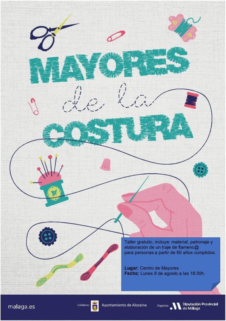 El próximo lunes 8 de agosto empieza un taller gratuito de costura con varias clases para la confección de un traje de flamenc@, en el cual solo tendrás que poner tus dotes para la costura, con los trajes elaborados se hará un desfile en octubre con todos los realizados en la provincia de Málaga.