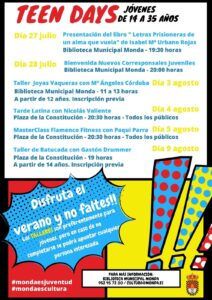 ACTIVIDADES TEEN DAYS Monda ACTIVIDADES TEEN DAYS Con motivo de celebración del Día Internacional de la Juventud, que se celebra el próximo 12 de agosto se realizarán las siguientes actividades.¡Disfruta, y