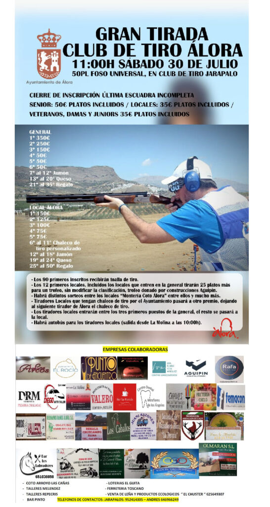 Será el sábado, 30 de julio, a las 11h en el Club de Tiro Jarapalo. ¡Anímete y participa! Sábado, 30 de julio 11,00h